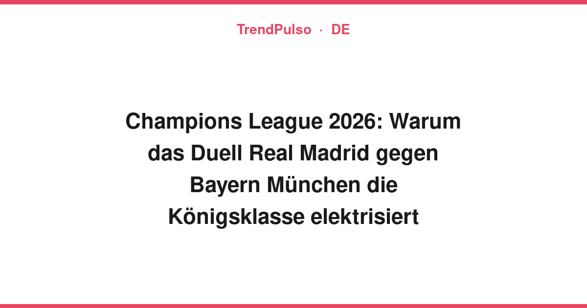 Das Viertelfinale zwischen Real Madrid und Bayern München ist mehr als nur ein weiteres Spiel in der Champions League. Es ist ein Duell mit Geschichte, Strahlkraft und enormer sportlicher Bedeutung. Beide Teams bringen alles mit, was ein europäischer Klassiker braucht: Qualität, Erfahrung und den Willen, in den entscheidenden Momenten zu bestehen.